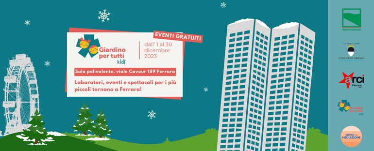 Dopo il successo della rassegna estiva, grazie al contributo della regione Emilia Romagna e del Comune di Ferrara, nel mese di dicembre ritorna Giardino per tutti KIDS nella sala polivalente in viale Cavour 189.